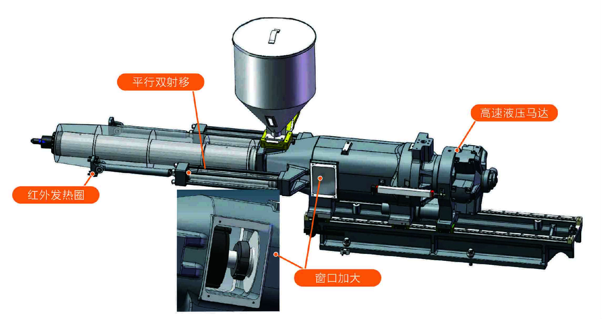 強化鎖模系統,強度剛度合模力提升15%-20%。